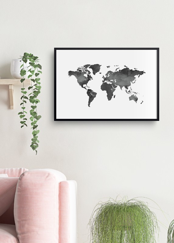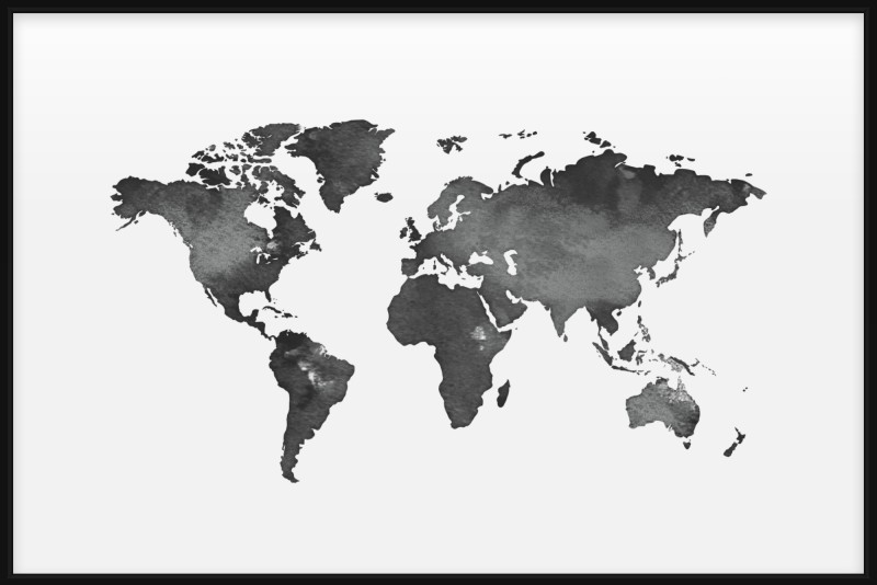 World Map Black Watercolour