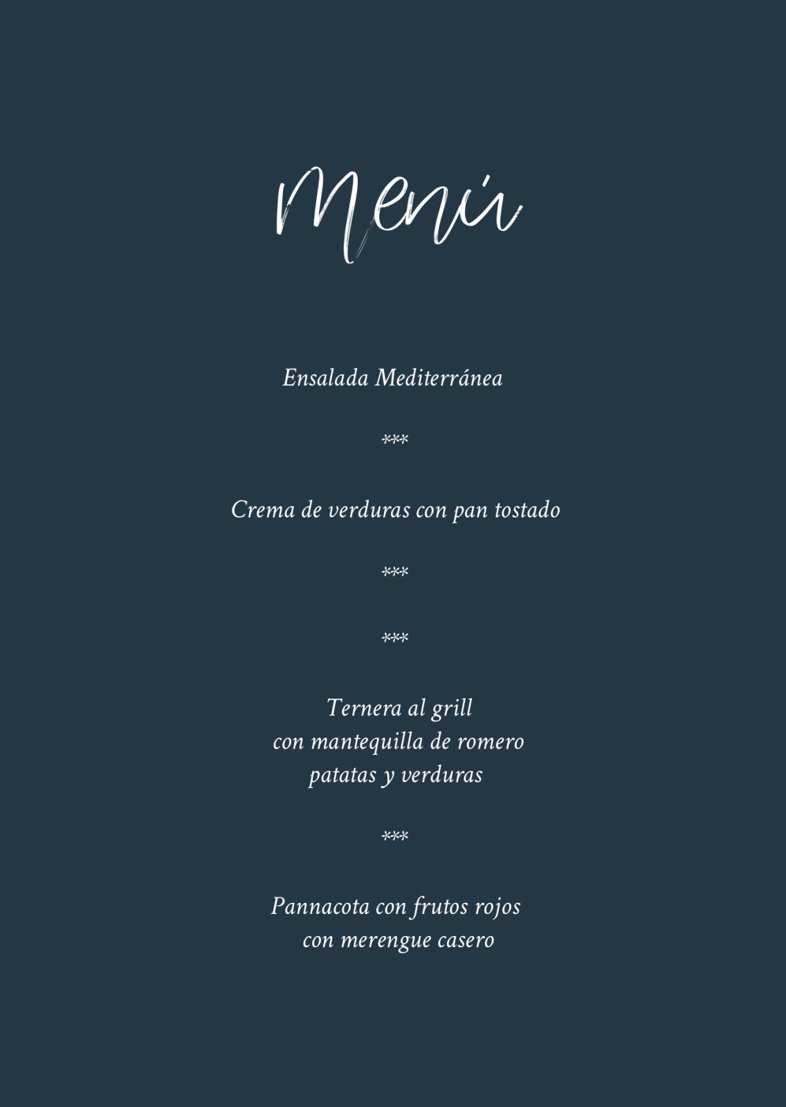 Tarjetas para menú de boda