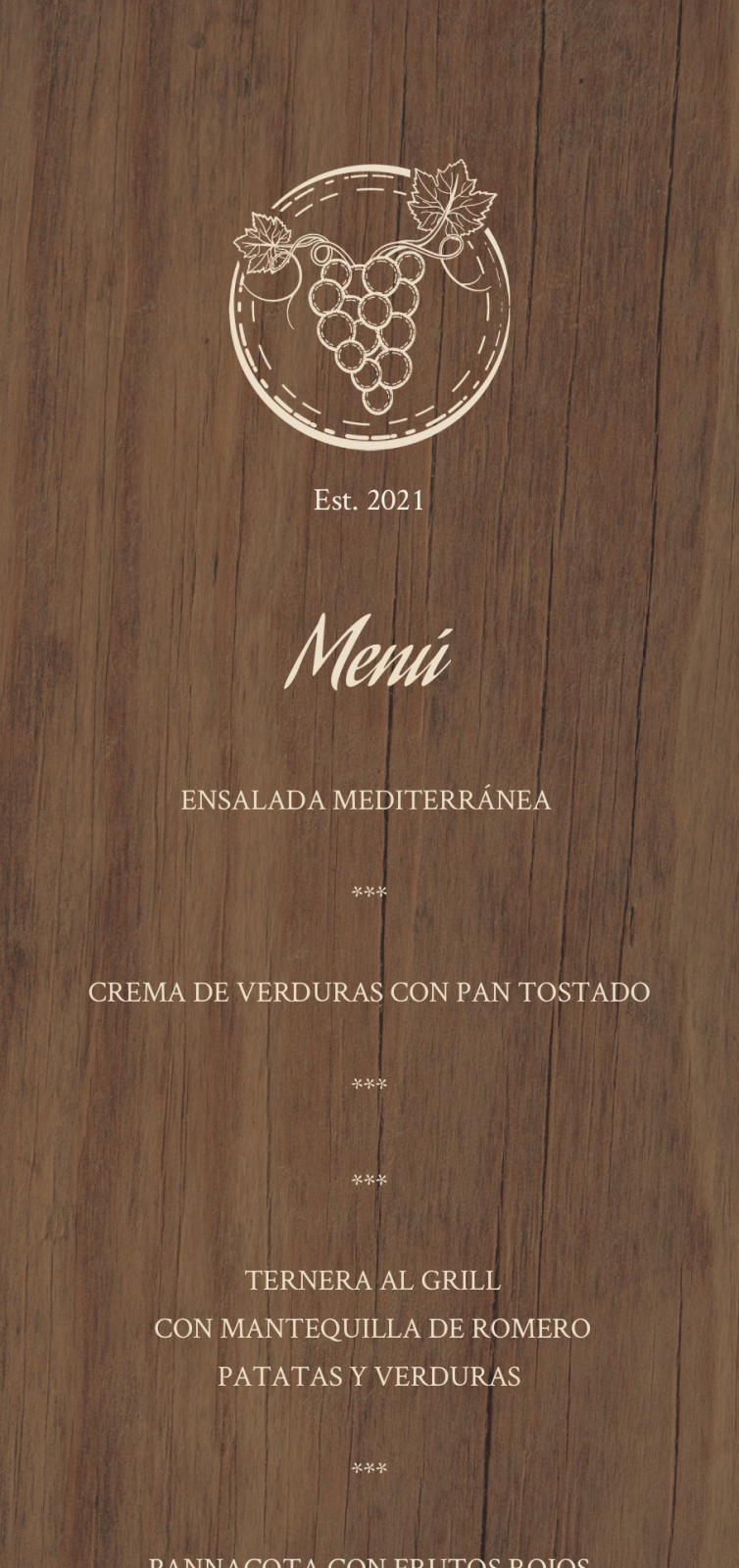 Tarjetas de menú para Bodas y Fiestas