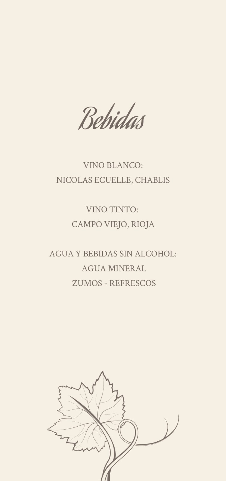 Tarjetas para menú de boda