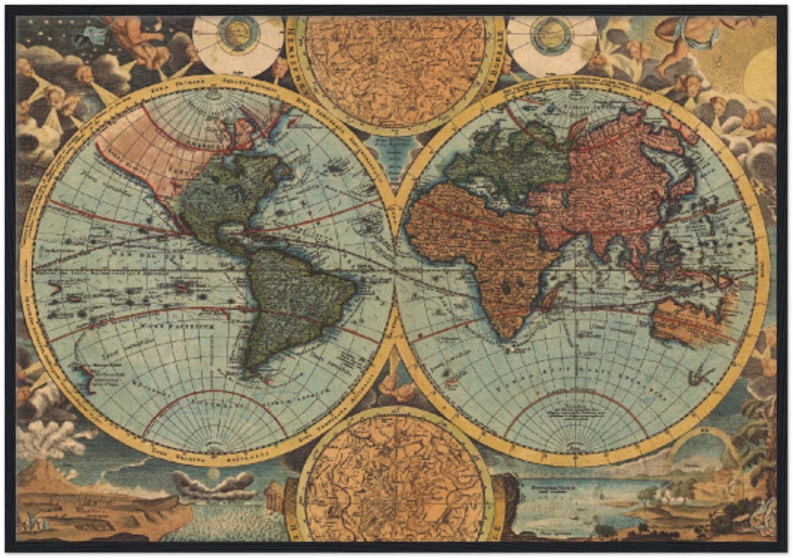antiguo, azul, ciudad, mapa, vistoso, world-maps, art-prints/maps-&-cities/world-maps