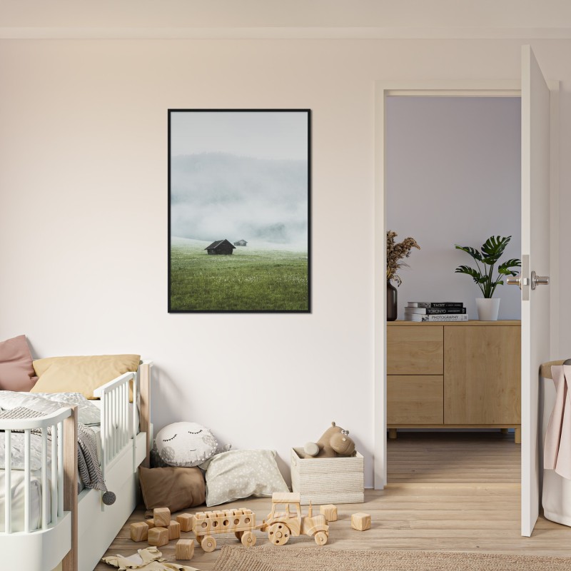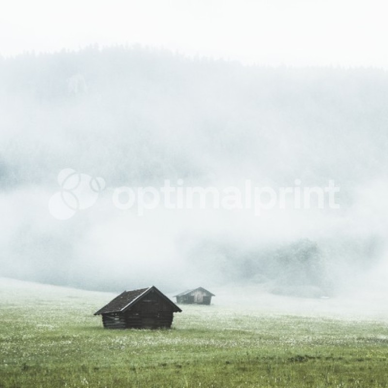 Mountain Cabins Covered In Fog 2 Póste