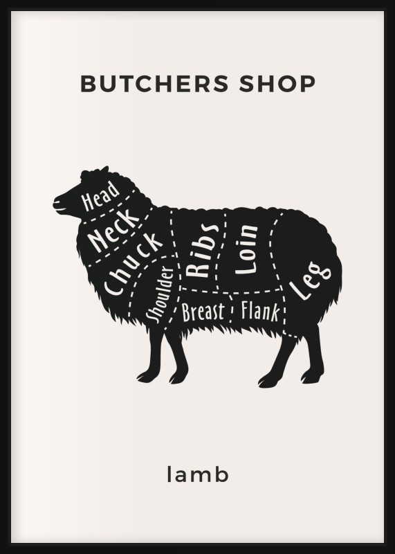 Inicio  / Pósters  / Cuadros de cocina  / Butchers Shop Lamb